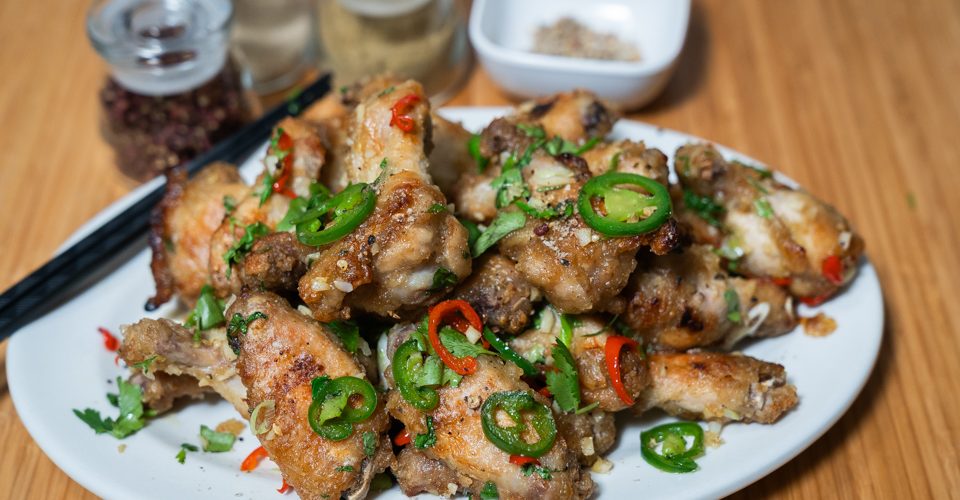 The classic combination of garlic, chili, salt and pepper is awesome on chicken wings. Using potato starch to coat the wings gives them a crispier texture without having to deep fry at home and helps all the aromatics adhere to the wings. An air fryer gives a crispier wing but I find even with an … Continue reading Salt and Pepper Chicken Wings
